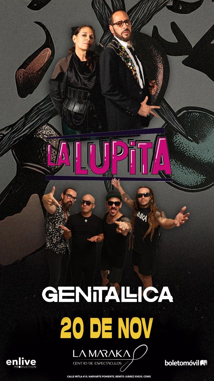Hay noches que no se anuncian: se presienten. Este jueves 20 de noviembre de 2025, el Centro de Espectáculos La Maraka será epicentro de un estallido que unirá dos fuerzas emblemáticas del rock mexicano: La Lupita, banda legendaria que regresa con su nuevo sencillo “El Insecto”, y Genitallica, los irreverentes del norte que llegan a la capital con su más reciente tema “Me gustas un chingo”, un canto desenfadado al deseo, a la emoción y al puro vértigo de sentirse vivo. Será una velada de guitarras encendidas, nostalgia compartida y humor contestatario, donde el público volverá a comprobar por qué el rock mexicano sigue siendo el espejo más honesto de una generación que no se rinde. Los boletos ya están disponibles a través de Boletomóvil y en las taquillas del recinto.
