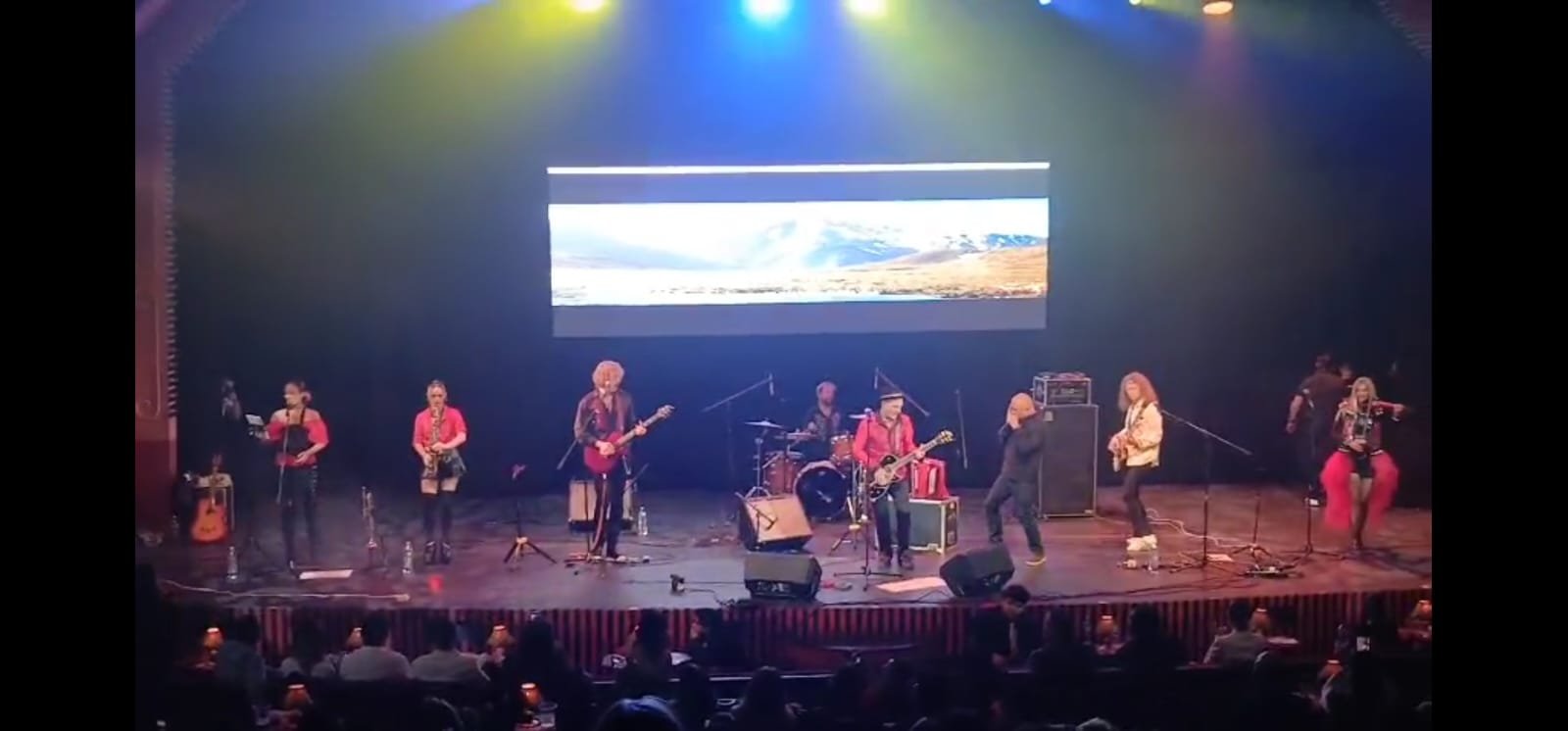 Cuando Oleg Skrypka apareció en el escenario al frente de Vopli Vidopliassova, el aplauso fue largo y contenido, más cercano a un gesto de reconocimiento que a la euforia inmediata. El Teatro 2 respondió con una escucha atenta, consciente de estar frente a una de las figuras fundamentales del rock ucraniano. La música comenzó a fluir como una narración emocional en la que cada tema funcionó como un capítulo de la historia reciente y profunda de Ucrania, con canciones como “Karmen”, “Kateryna” y “Dva Kolory” estableciendo desde el inicio un vínculo directo con la identidad, la raíz y el orgullo cultural.