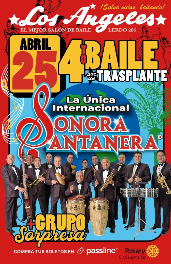 El latido de una causa que ha salvado vidas volverá a sentirse con fuerza este sábado 25 de abril en el Salón Los Ángeles, en un evento donde la música se convierte en esperanza compartida. Esa noche se celebrará el “4º Baile por un Trasplante”, organizado por el Club Rotario de Cuajimalpa, con boletos disponibles en Passline, y la promesa de ausa que ha salvado vidas volverá a sentirse con fuerza este sábado 25 de abril en el Salón Los Ángeles, en un evtransformar un salón de baile en un espacio de solidaridad y memoria. Para este acto se ha confirmado de forma inicial a La Única Internacional Sonora Santanera, una agrupación histórica pero también se contará con invitados especiales sorpresa que pronto serán revelados.