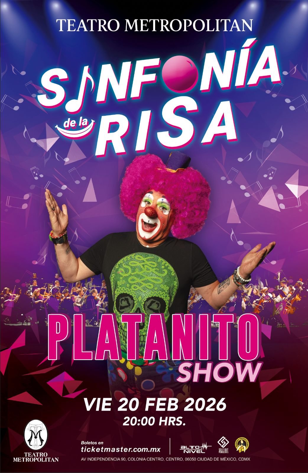 Platanito regresará a uno de los escenarios más emblemáticos de la Ciudad de México el próximo viernes 20 de febrero a las 20:00 horas, cuando presente su espectáculo titulado Sinfonía de la risa en el Teatro Metropólitan. La función está concebida como una noche especial de comedia en gran formato, con invitados sorpresa y una propuesta escénica que reúne los elementos que han convertido a Platanito en uno de los comediantes más reconocibles y polémicos del país. Los boletos se encuentran disponibles en el sistema Ticketmaster y en las taquillas del inmueble.